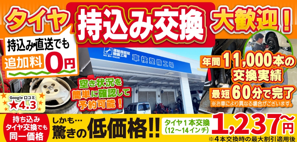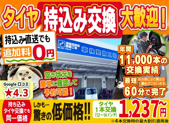 多くのお客様から持ち込み交換のご要望を頂いたため、タイヤ持込・交換も受け付けております。