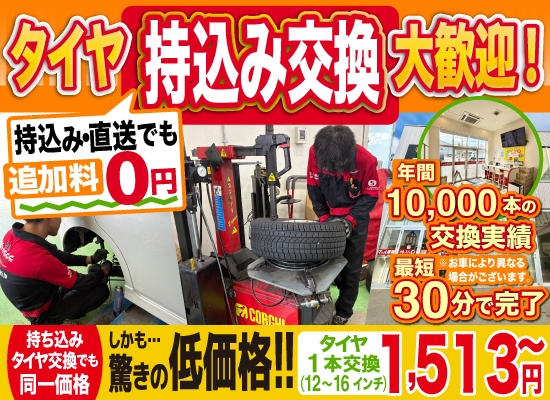 お客様のご希望に合わせてタイヤ持ち込み交換・取付対応致します!